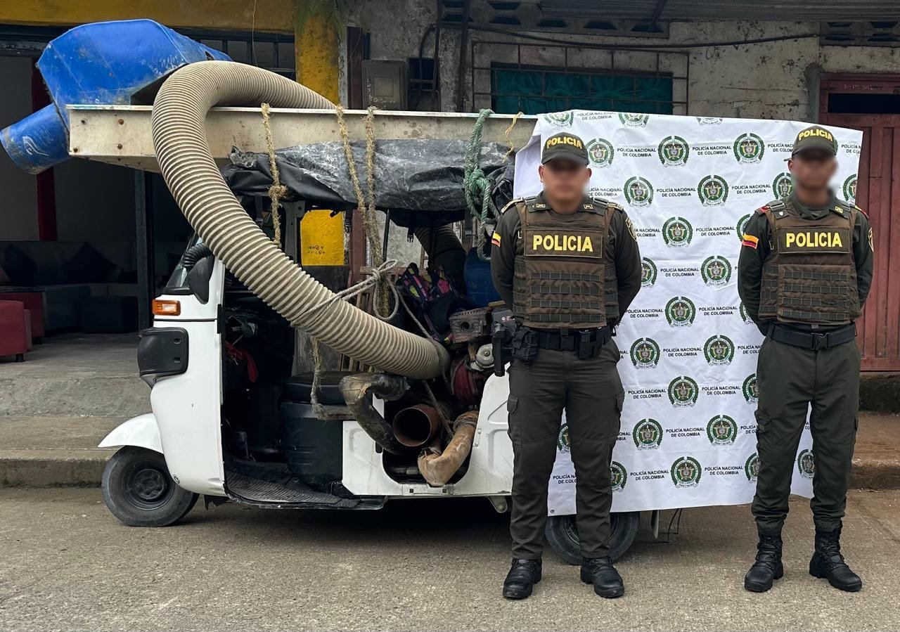 Y el tercer caso se presentó en la vía principal que desde el municipio de Unión Panamericana conduce a Certegui, cuando los uniformados realizaban labores de control y observan un vehículo tipo motocarro que transportaba unos elementos para la actividad minera, como son 01 cajón, 01 manguera de 06 metros y 01 canalón.